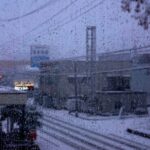 極端な冬型になり、朝から激しい雪が降っています。降り始めの霙(みぞれ)から、この時間は湿り雪に変わりました。気温が高いので湿り雪がガラス窓に付着して、水滴に変わっています。北信病院の西病棟が霞んで見えます。 その後雪は激…