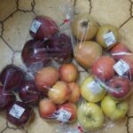 産直の店で買ってきました。一個 @97 円でした。ちょっと買い過ぎたかな? 内訳は、サンふじ 6個 500円、奥のスパイス 3個 380円、ぐんま名月 3個380円、なかのこまち 7個 420円、冬彩果(大) 3個 42…