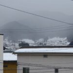 極端な冬型になり、朝から激しい雪が降っています。降り始めの霙(みぞれ)から、この時間は湿り雪に変わりました。気温が高いので湿り雪がガラス窓に付着して、水滴に変わっています。北信病院の西病棟が霞んで見えます。 その後雪は激…