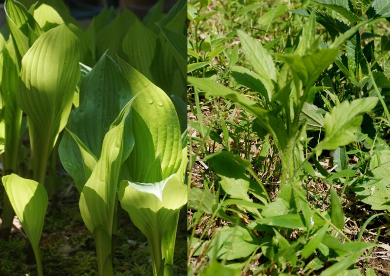 春になって我が家の庭もすっかり緑になりました。コバギボウシ(左)やハルジオン(右)を取って食べました。患者さんからは、野沢菜の塔たち菜、ほうれん草を頂いたので、スーパーでお菜を買わなくて済みます。初夏まで続きそうです。