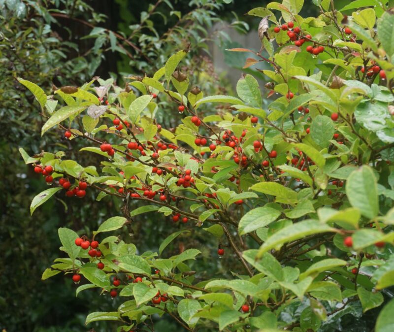 庭に出たらウメモドキが赤く色づいていました。季節はいつの間にか秋です。