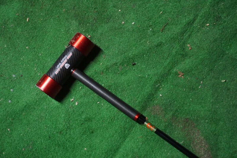 玉を失くしたので、今日の写真はスティックだけです。良く晴れたので、山ノ内町のマレット場に行きました。所どころに雪が残っていましたが、スコアーは関係ないので一人で回りました。所どころ雪が残るコースで、思い切り打ったら行き過ぎて奥の雪原方向に飛んでいきました。手前の落ち葉の中で球を失くしました。いくら探しても、球がありません。奥の雪原に飛び込めば跡が付くはずだから、そこまでは飛んでいないのですが・・・・。