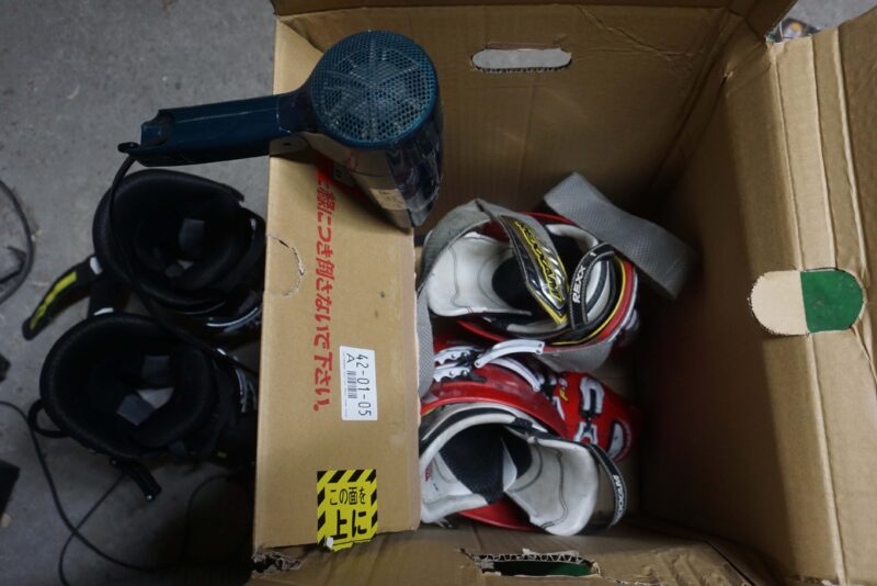 午前中はスキーでした。暮から数えて今日で7回滑りました。だんだん調子が出てきました。惜しむらくは、最近買ったセットスキー用のブーツ(向かって左の黒) が、軟(やわ)で物足りない点でした。ずっと前から履いていたレース用のブーツ(向かった右側の赤)にしたかったのですが、シェルが固くて履くのに苦労することです。温めれば履けるのですが、朝 車の中で温めてもなかなか大変でした。写真の段ボールの中にヘアドライヤーを入れて温風を吹き込むと、簡単に温まることが分りました。そのような訳で、安物のセットスキーがいらなくなったので、孫娘に呉れようかと思います。