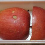 「ふじ」です。患者さんから頂きました。夏の降雹(ひょう)被害で傷があります。夏の雹は広範囲に及び、リンゴ農家は大被害でした。傷のある球は出荷できないので、受診のさい私たちに下さいます。今年は夏が暑かったせいか、リンゴはと…
