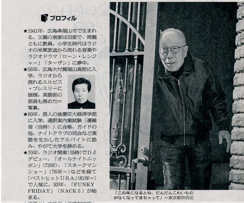 DJの小林克也さんです。英語が堪能で、子供の頃 FEN を聴いて英語が分る様になったそうです。頭の良い人なんだろうな。  写真下の説明文に「この年になって、だんだんこわいものがなくなっちゃって」