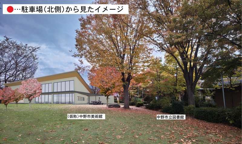 批判しながら、市提供の画像を使うことお許しください。掲示された完成写真は、4.5億円かけて作るミニ美術館です。私はこの構想の違和感の訳が分かりました。美術館とするにはあまりにちゃちいと思いませんか? 昨年の8月に市は図書館前広場に、美術館を作ると発表しました。設置場所が中野市立図書館に付随したオアシス公園であること、展示内容、規模などで反対意見が噴出し、いま私は再検討を求める会の代表を務めています。中野市は市民の声を無視して強引にことを進めようとしていますが、私たちは粘り強く反対を唱えて行きます。ご支援をよろしくお願いいたします。