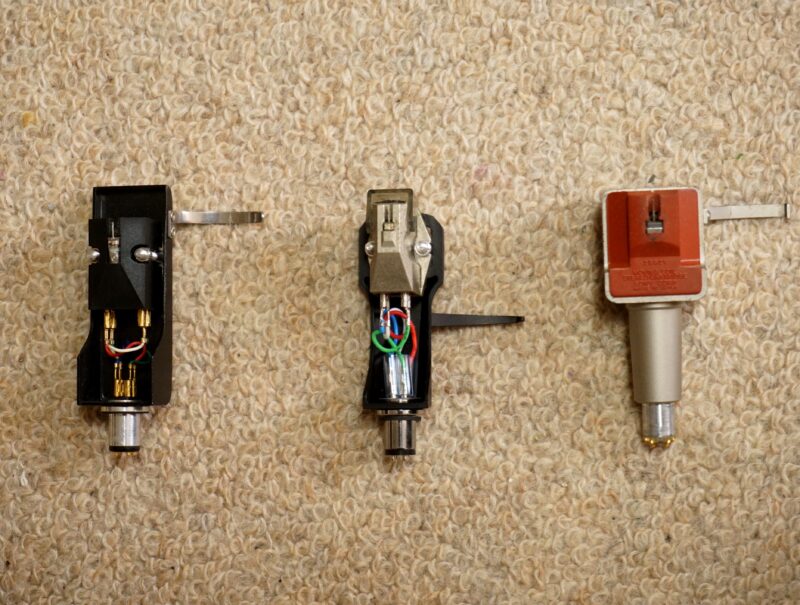 左から、DENON  DL-103 丈夫で、高出力で、比較的やすいので、MCカートリッジの入門版です。しかし、いろいろなカートリッジを浮気しても、結局このカートリッジに戻る人が多いです。    真ん中は今回買った Ortofon 社製 MC 20  MKⅡ  です。超低出力ですが、音質は最高です。   右が SONY XL-55 Pro です。 低出力タイプです。SONYのカートリッジは発売中止です。