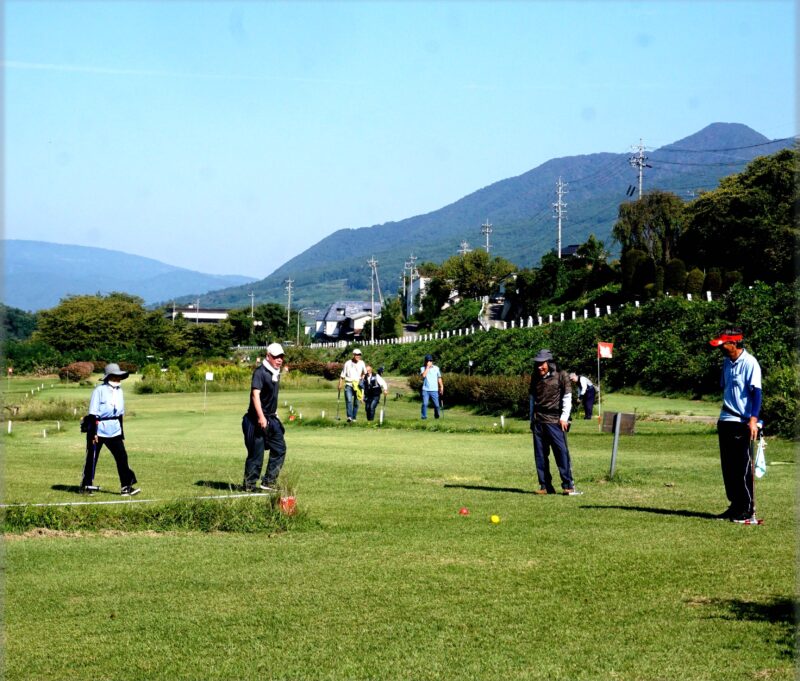 9月28日(日) 午前9時 山ノ内町緑地公園マレットゴルフ場です。丁度大会をやっていて、沢山のゴルファーが嬉々とプレーしていました。私は最後尾でプレーを始めたのですが、混んでいてなかなか進みません。仕方がないので誰もいないコースにショートカットしてプレーしました。18H 分回って帰ってきました。